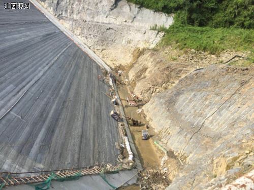 二,开展安全隐患排查。对目前大坝趾板工作面的高边坡危石进行处理、工具器材堆放至较平地段、平趾板段施工用电线路为防止雨水浸泡进行架空保护等。